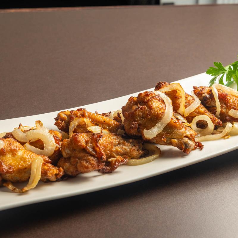 Served with Choice of Blue Cheese or Ranch Dressing • Additional Dressing: 75¢ Each • Your Choice of 9 Tasty Flavors! Buffalo (Classic Hot) | Barbeque (Mild) | Garlic Parmesan | Honey-Garlic | Nashville Hot | Mango-Habañero | Sweet Red Chili | Sweet Teriyaki | Naked (No Sauce/Plain)